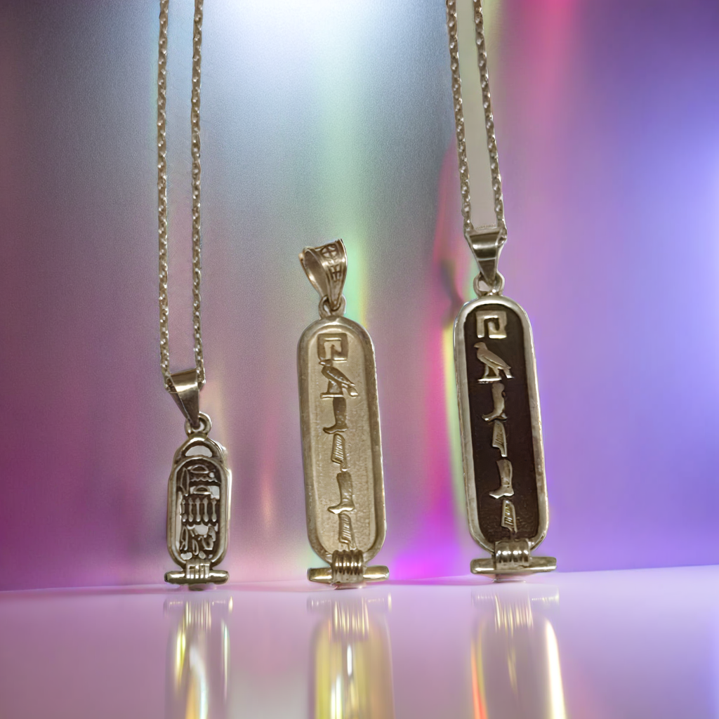 Today, a cartouche can still serve as a meaningful symbol of personal legacy. It’s not just a necklace; it’s a piece of history, culture, and tradition. At our store, we offer the opportunity to have your own name or the name of a loved one engraved on a cartouche in authentic Egyptian hieroglyphics. Whether it’s a personal keepsake or a thoughtful gift, wearing a cartouche allows you to carry a piece of Egypt’s ancient power with you wherever you go.