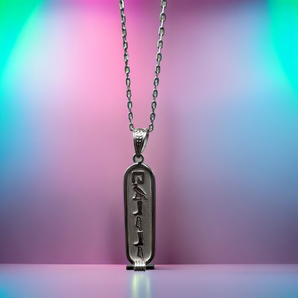 Create your very own cartouche, engraved with any name or word of your choice in authentic Egyptian hieroglyphics. Whether for a gift or personal memento, your custom cartouche will be a timeless piece of art that carries meaning.